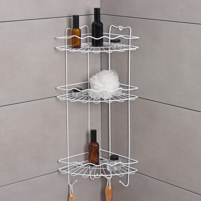 Полка для ванной угловая 3-х ярусная «Волна», 24×24×64 см, цвет белый