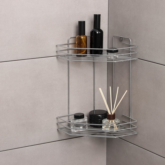 Полка для ванной угловая 2-х ярусная, 20,5×20,5×31,5 см, цвет хром