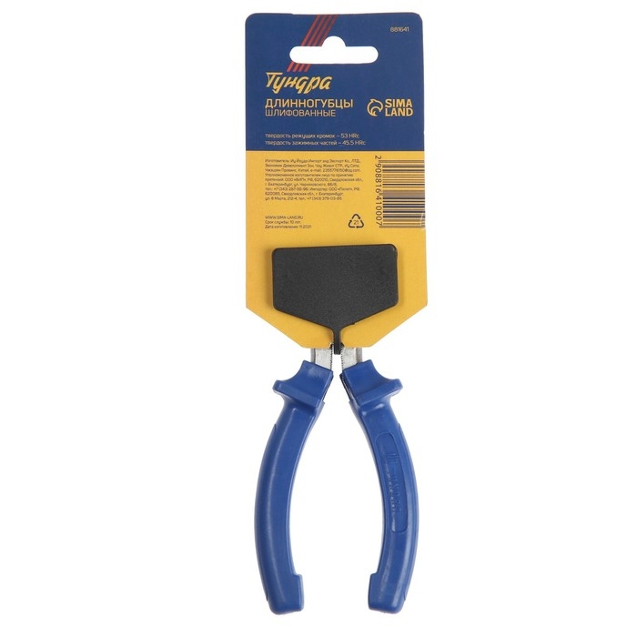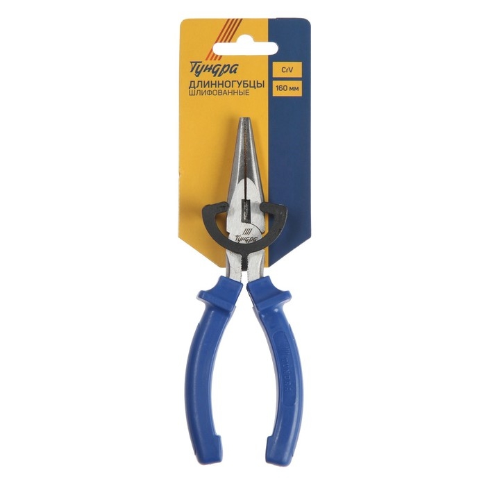 Длинногубцы ТУНДРА, CrV, шлифованные, пластиковые рукоятки, 160 мм