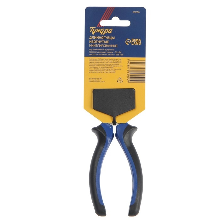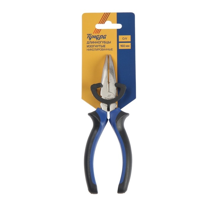 Длинногубцы изогнутые ТУНДРА, CrV, никелированные, двухкомпонентные рукоятки, 160 мм