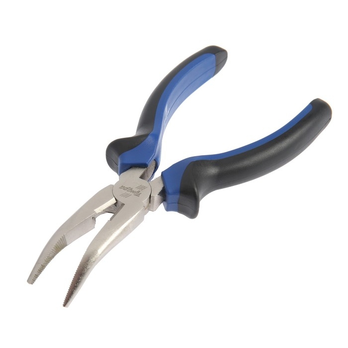 Длинногубцы изогнутые ТУНДРА, CrV, шлифованные, пластиковые рукоятки, 160 мм