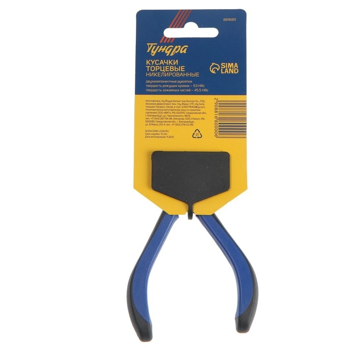 Кусачки торцевые ТУНДРА mini, никелированные, двухкомпонентные рукоятки, 105 мм