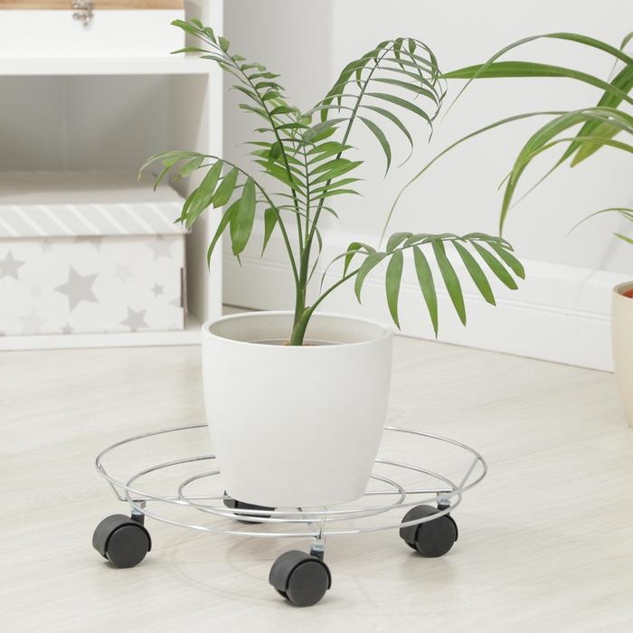 Подставка для цветов на колёсиках Доляна, 32×32×10 см, цвет хром