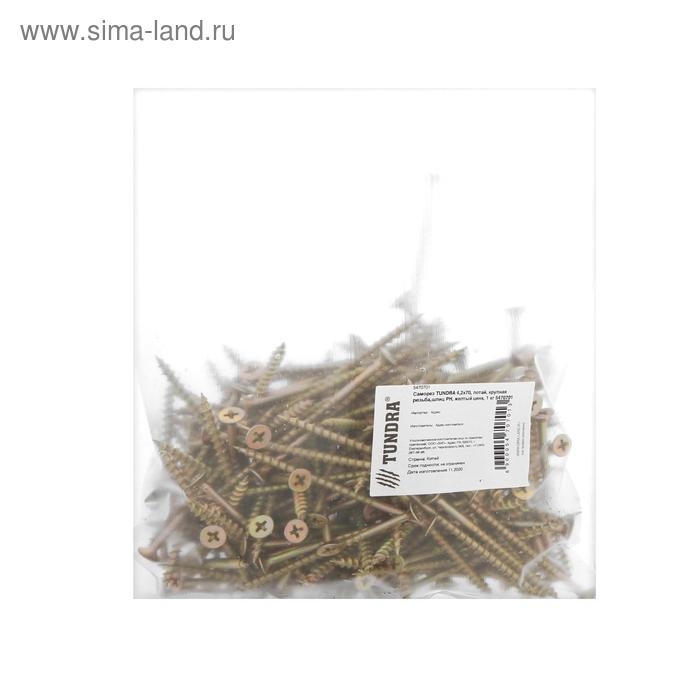 Саморез 4.2х70 мм ТУНДРА PREMIUM, потай, крупная резьба, шлиц PH, желтый цинк, 1 кг