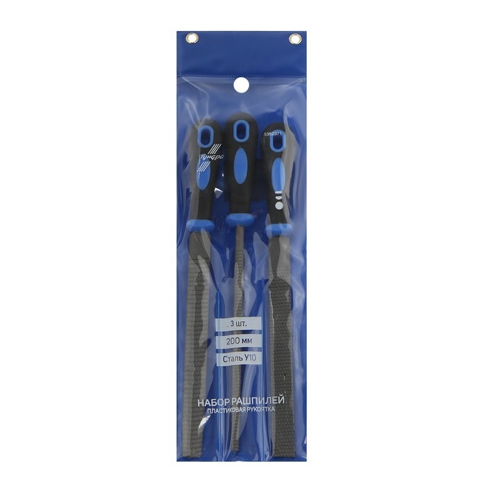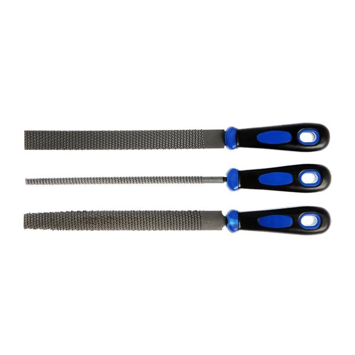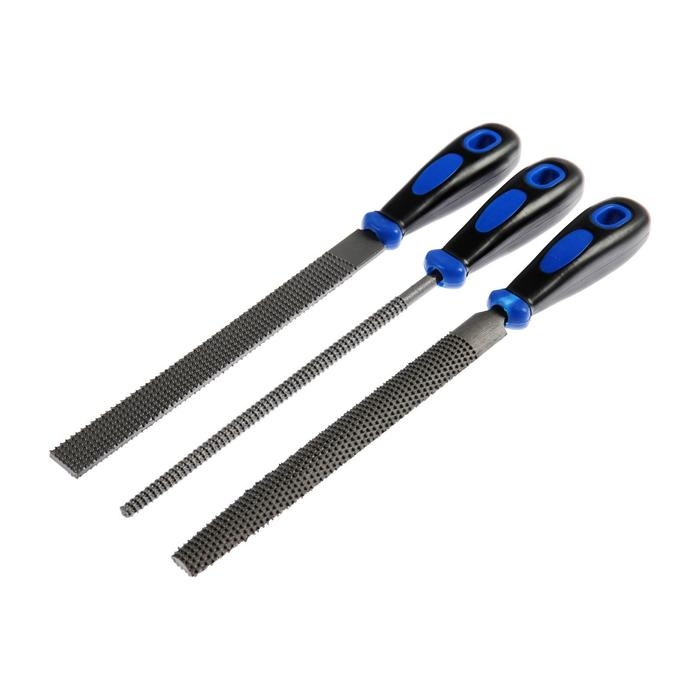 Набор рашпилей ТУНДРА, сталь У10, пластиковые рукоятки, 200 мм, 3 шт.