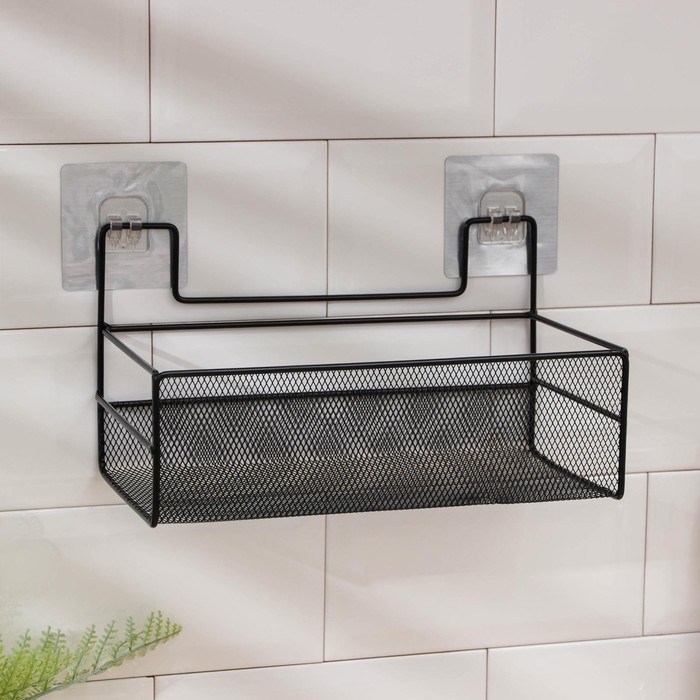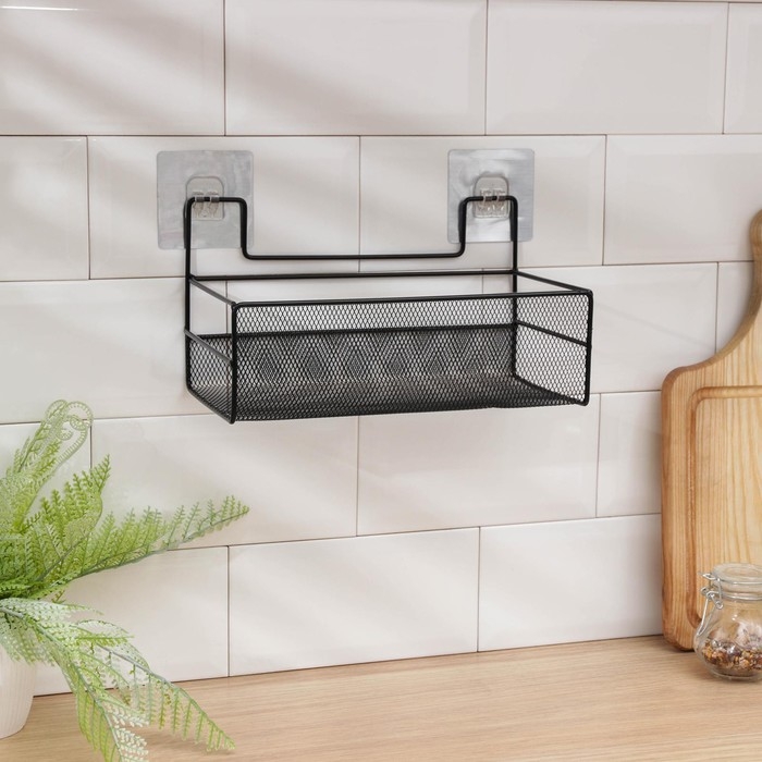 Полка для кухни Доляна, на липучках, 26×13,5×14 см, цвет чёрный