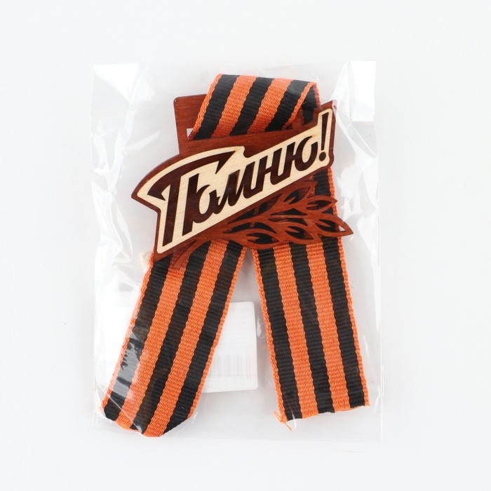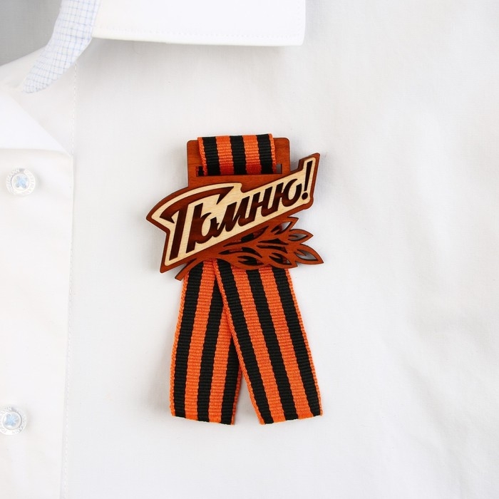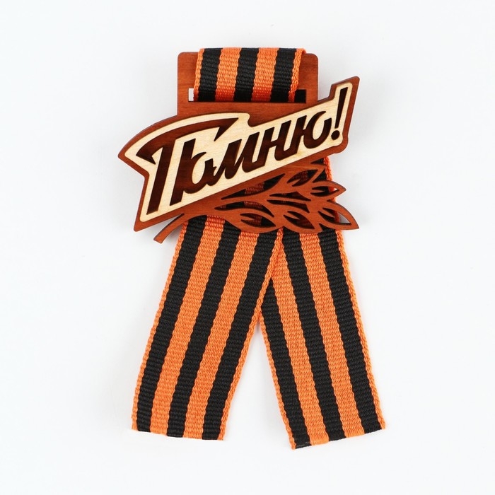 Значок деревянный с с георгиевской лентой на День Победы «Помню!», 6,1 х 4,8 см