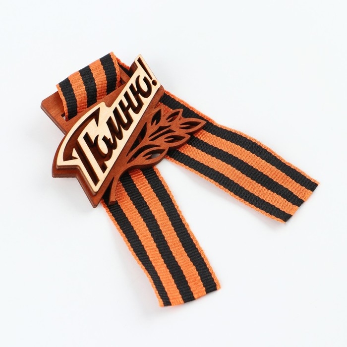 Значок деревянный с лентой «9 мая, орден», 6,1 х 8,2 см, георгиевская лента