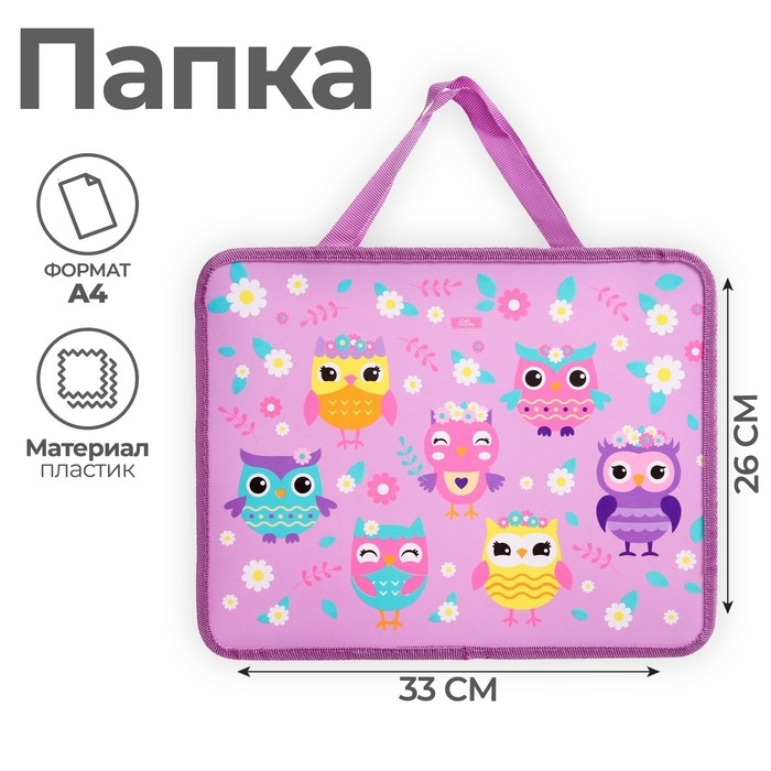 Папка с ручками А4, 330 х 260 х 75 мм, пластиковая, ручки-тесьма, Calligrata "Совушки"