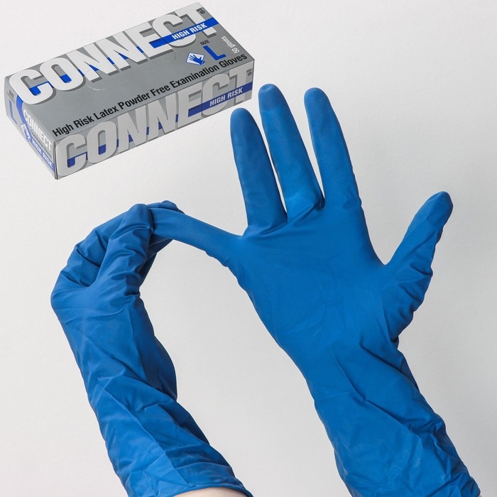 Перчатки латексные High Risk, смотровые, нестерильные, размер L, 50 шт/уп (25 пар), синие