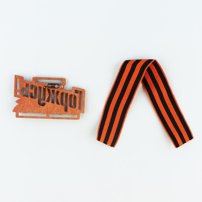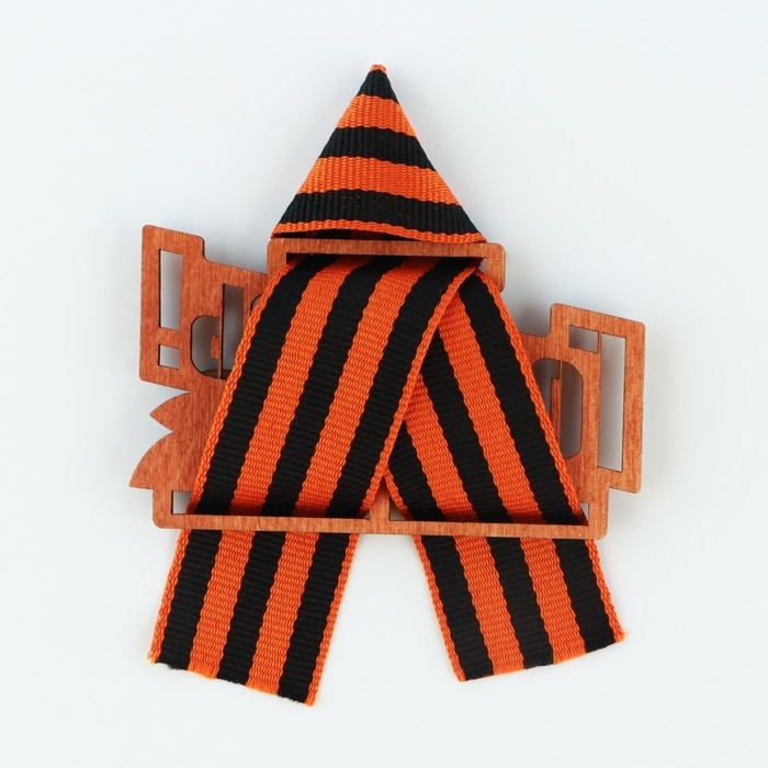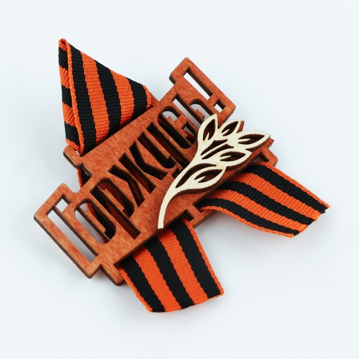 Значок деревянный с лентой «9 мая, орден», 6,1 х 8,2 см, георгиевская лента