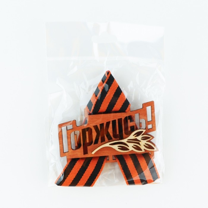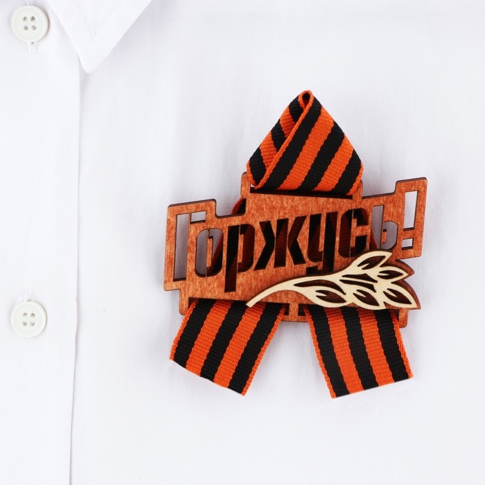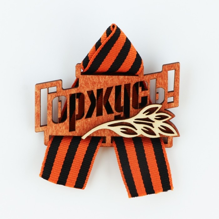 Значок деревянный с георгиевской лентой «Горжусь», 7,5 х 7,5 см