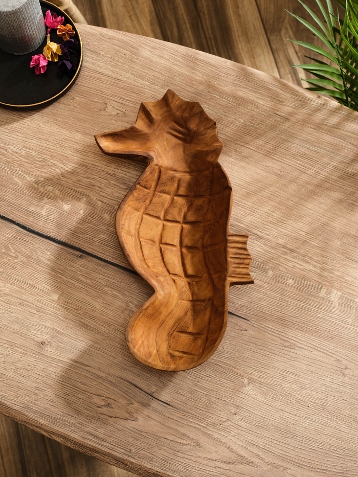 Тарелка "Морской конек" дерево Джати, 33х20х5 см, цв. коричневый