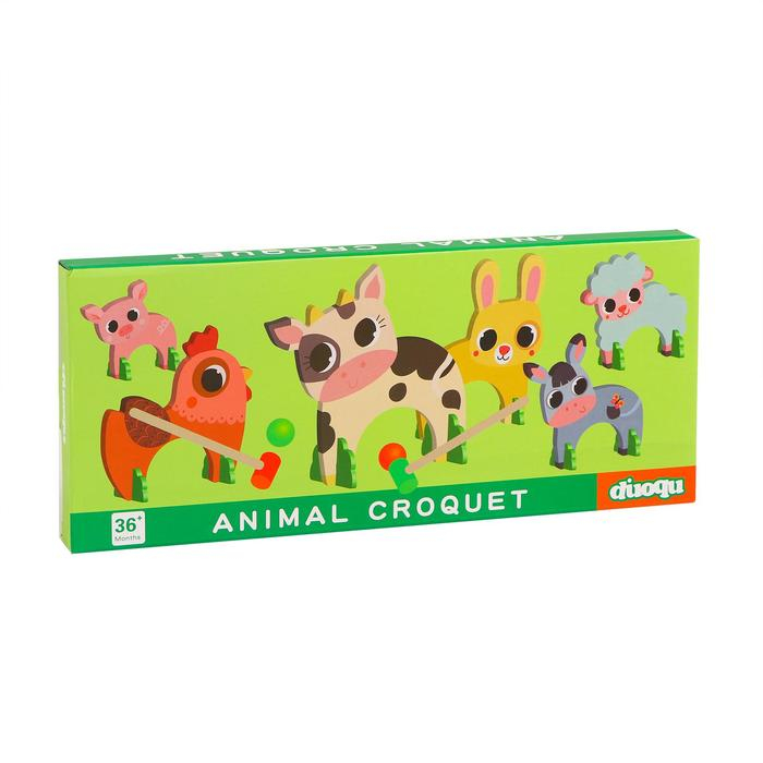 В комплекте: 6 ворот, выполненных в виде забавных зверушек; 2 молотка; 2 шарика. Все детали игры сделаны из прочного и экологичного материала — дерева.