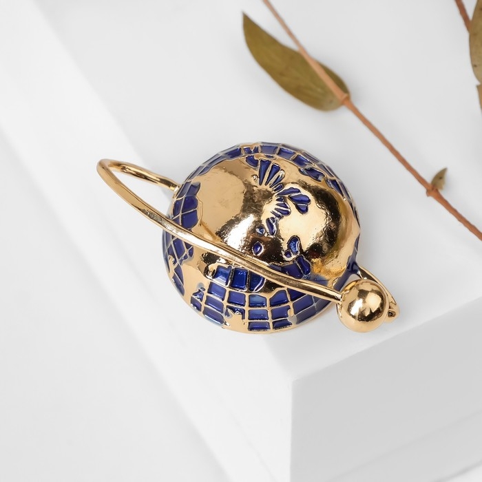 Брошь «Планета Земля», цвет синий в золоте