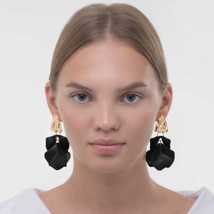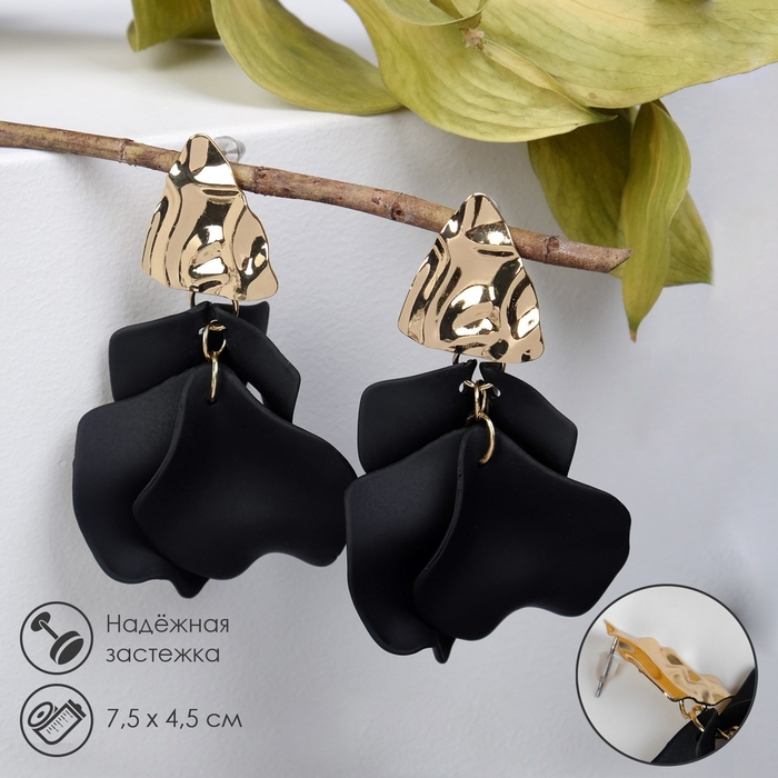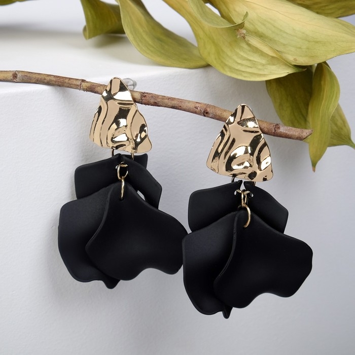 Серьги ассорти «Ветер» мятые треугольники, цвет чёрно-золотой