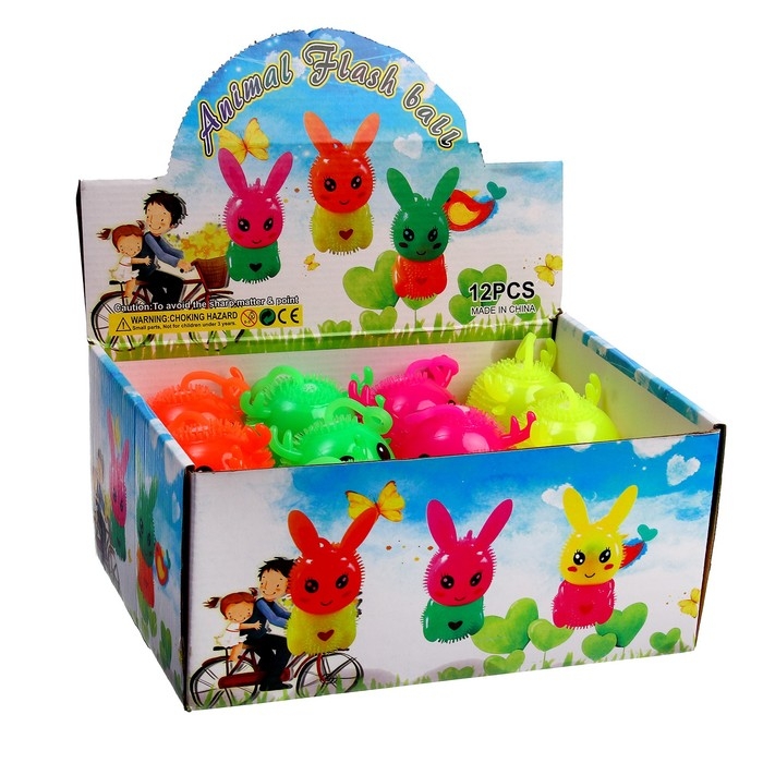 Мяч детский резиновый ёжка световой «Зверята», цвета МИКС, в шоубоксе