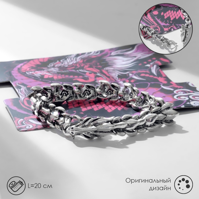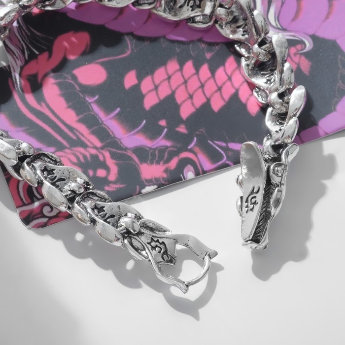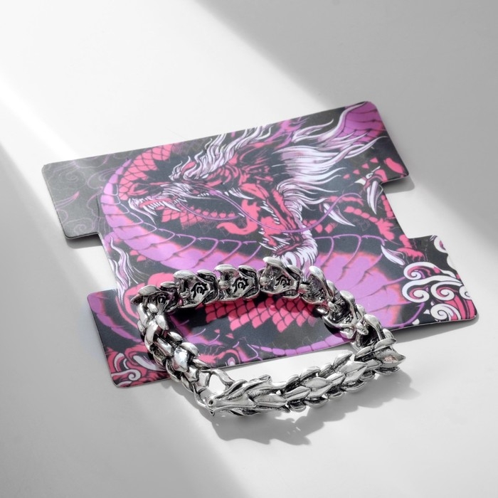 Браслет металл «Япония» отдыхающий дракон, цвет серебро, 20 см
