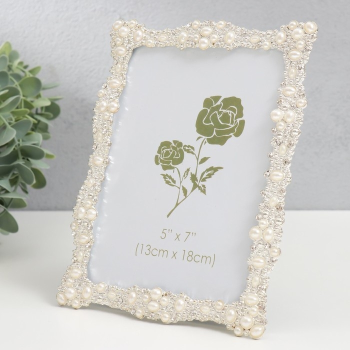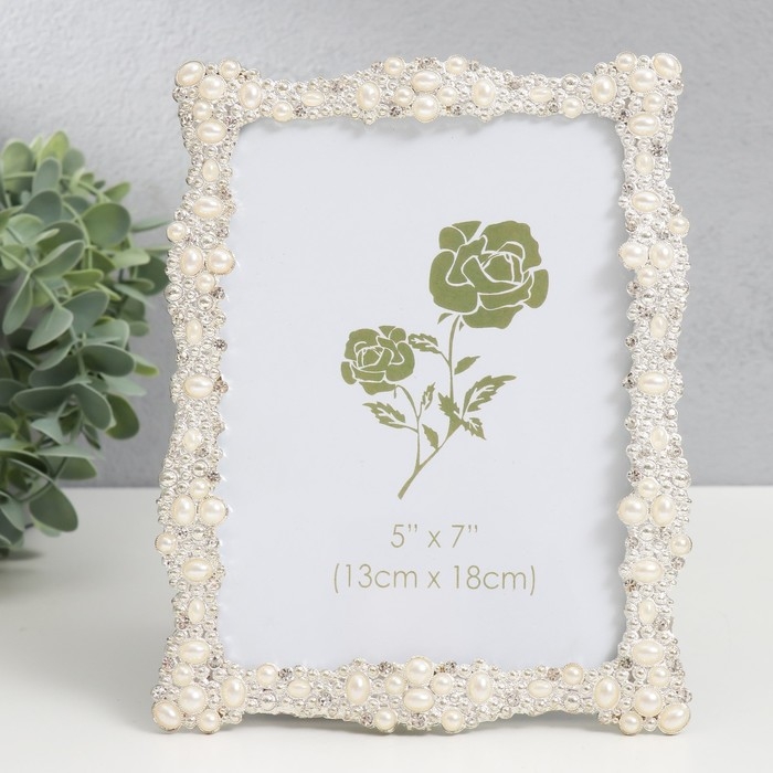 Фоторамка металл, стекло 13х18 см "Жемчужные волны" стразы 15х19,7 см