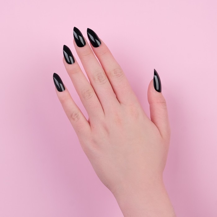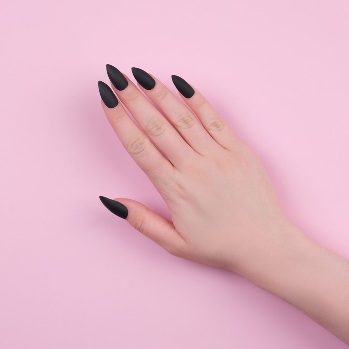 Накладные ногти, 24 шт, с клеевыми пластинами, форма миндаль, матовые, глянцевые, чёрные