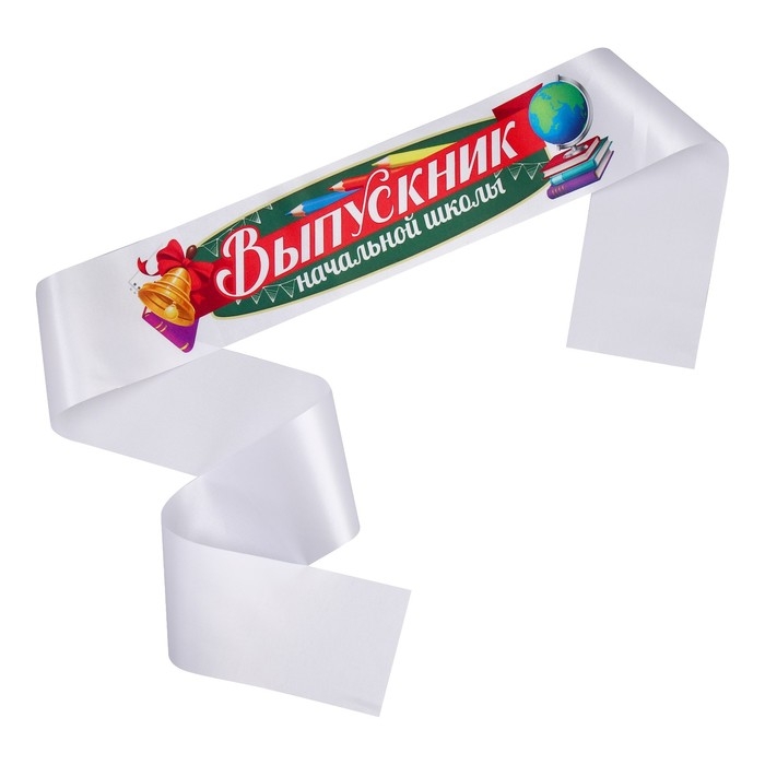 Лента атласная с цветным нанесением на Выпускной «Выпускник начальной школы», 140х10 см