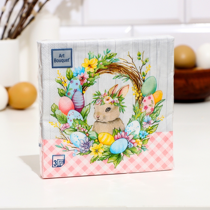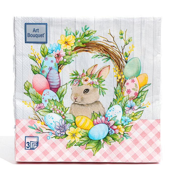 Пасхальные салфетки бумажные Art Bouquet «Пасхальный венок с кроликом», 3 слоя, 33х33 см, 20 шт