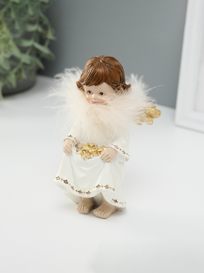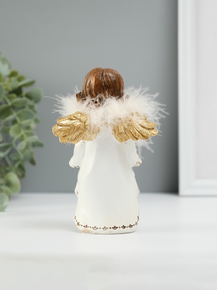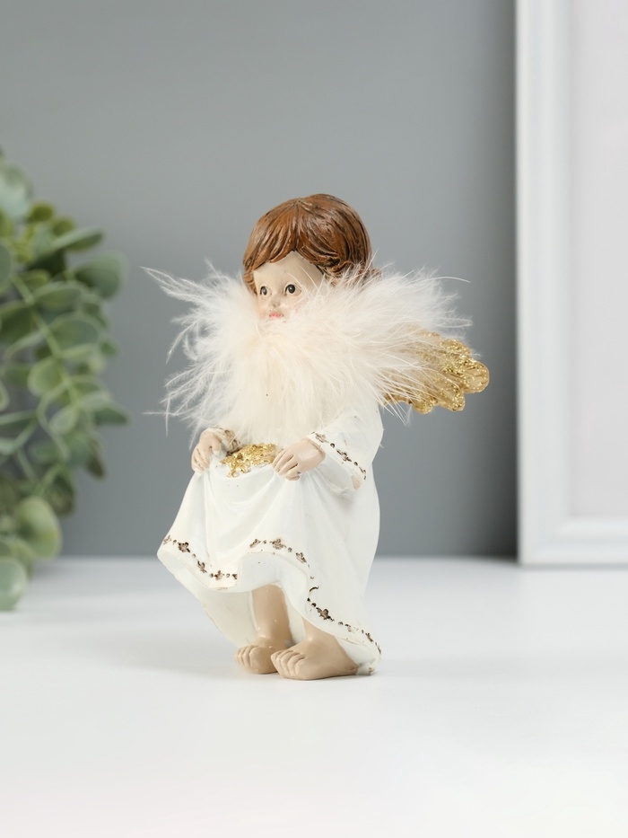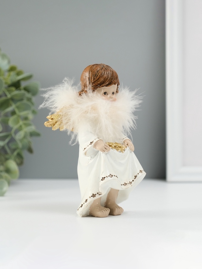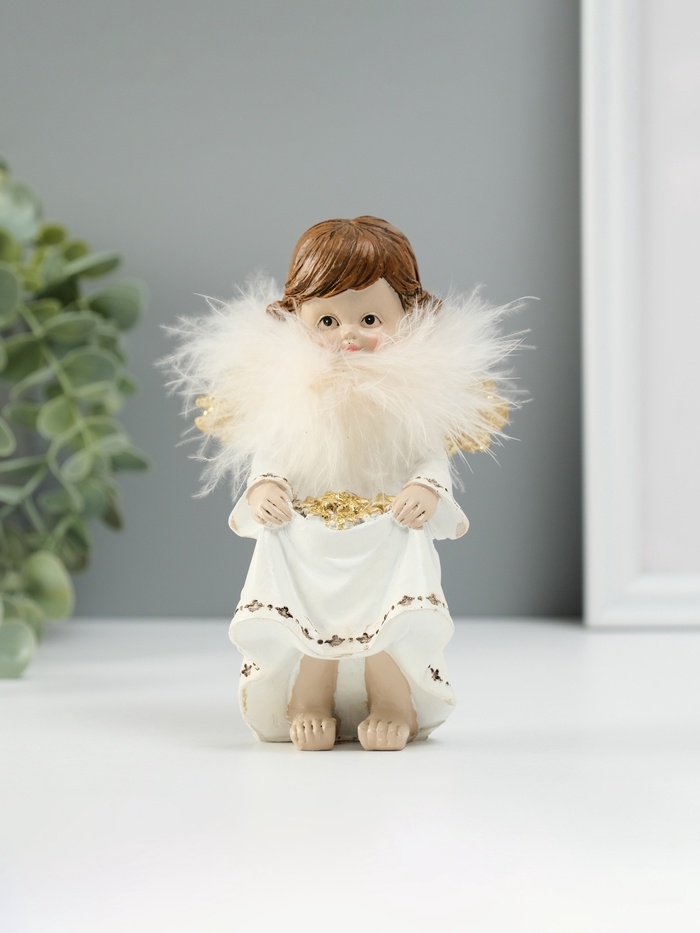 Сувенир полистоун "Ангелочек со звёздами в подоле" пух, золотые крылья 8,5х7х13 см