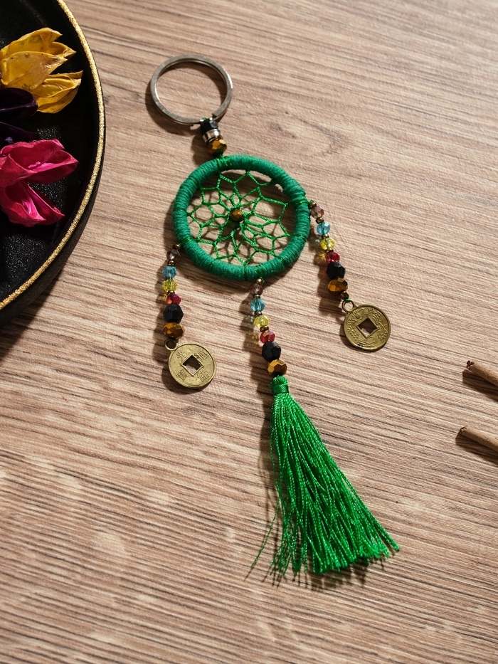 Брелок "Ловец снов" 4х15 см. тёмно-зелёный
