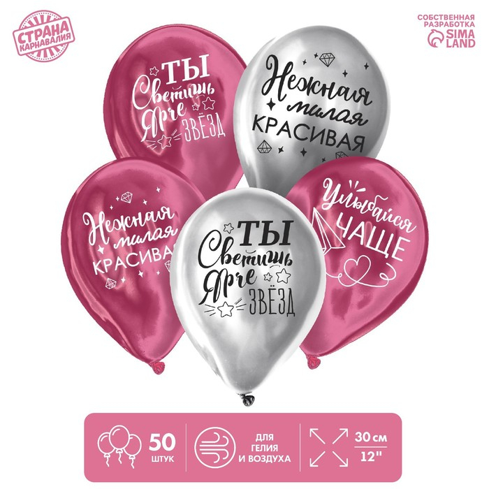 Воздушный шар латексный 12" «Все твои мечты», хром, 50 шт.