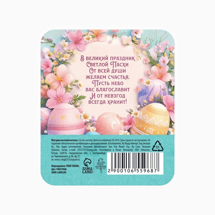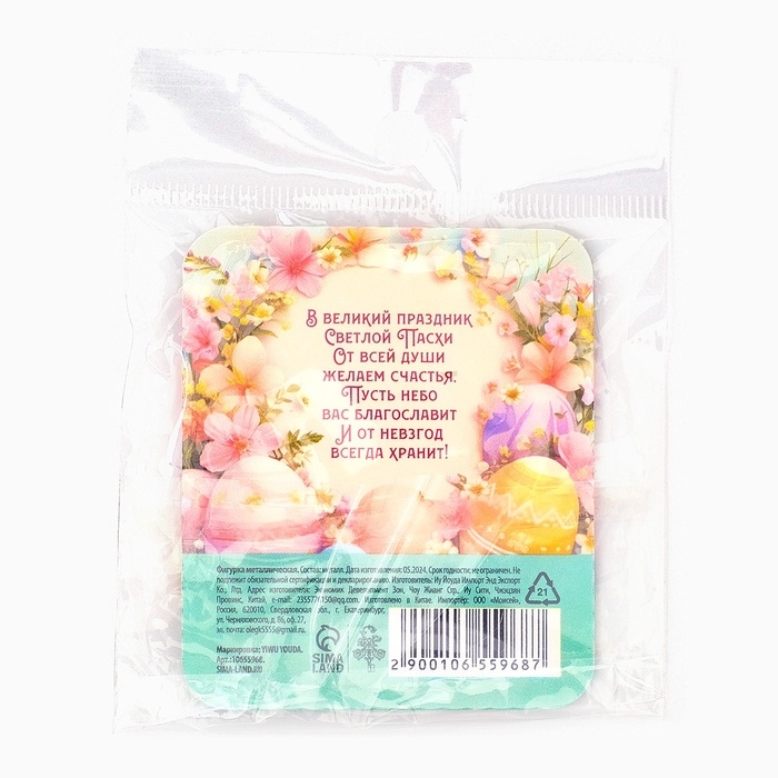 Фигурка металлическая "Пасхальное яйцо", 1.7 х 2.3 см