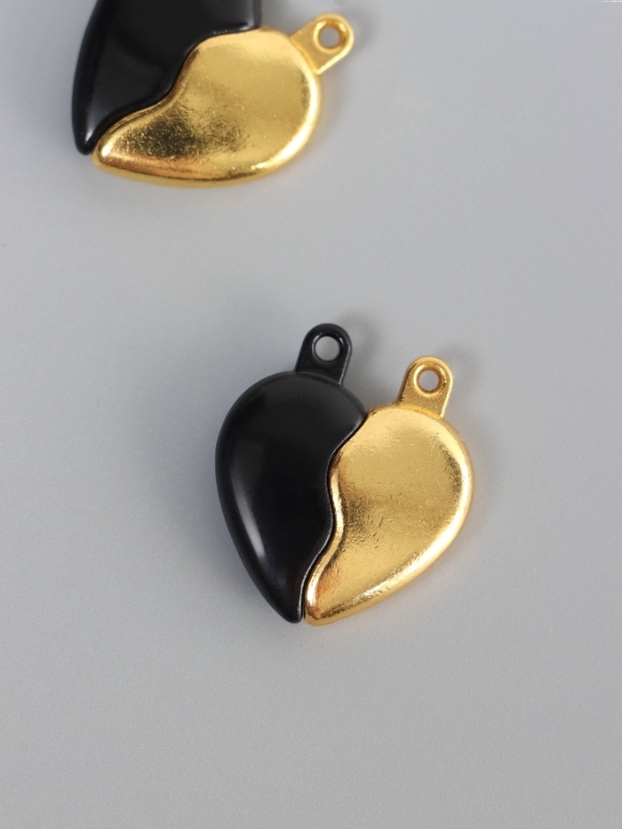Замок магнитный металл "Вторая половинка, сердце" набор 2 шт чёрно-золотой 2,6х2,2 см