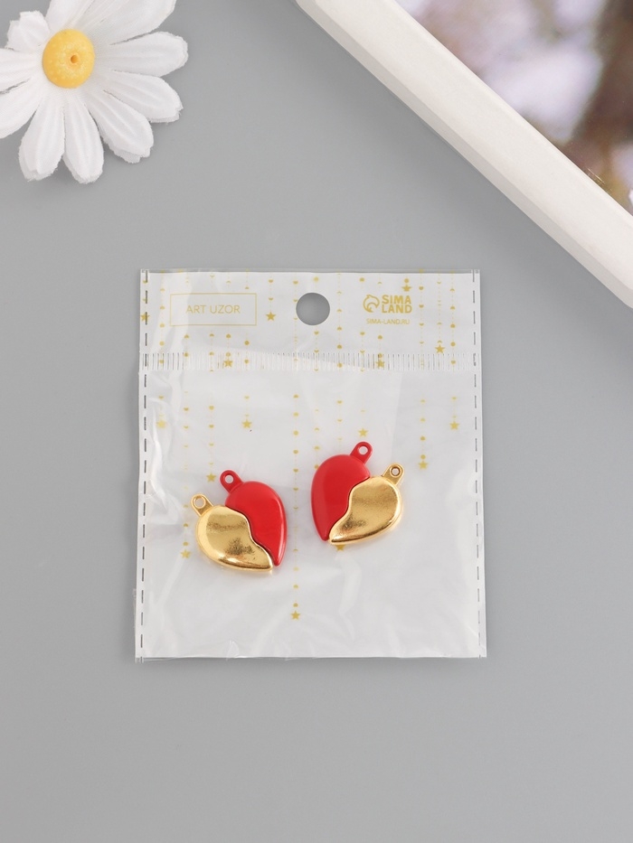 Замок магнитный металл "Вторая половинка, сердце" набор 2 шт красно-золотой 2,6х2,2 см