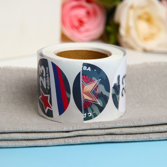 Наклейки для цветов и подарков "С Днем Защитника Отечества!", 4,4 х 4,4 см, 252 шт.
