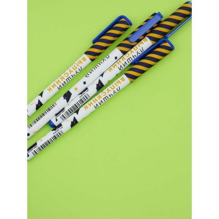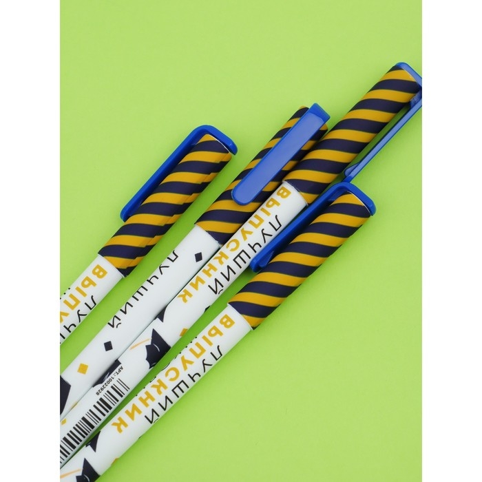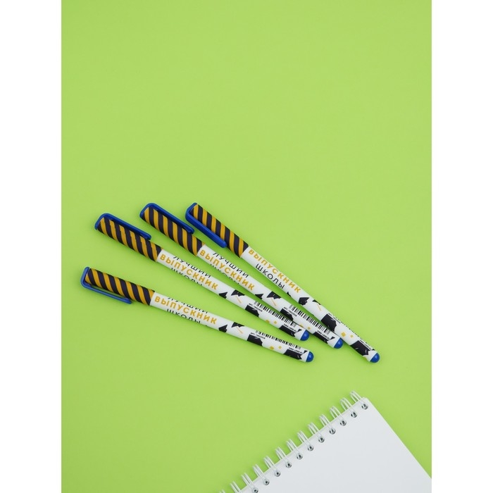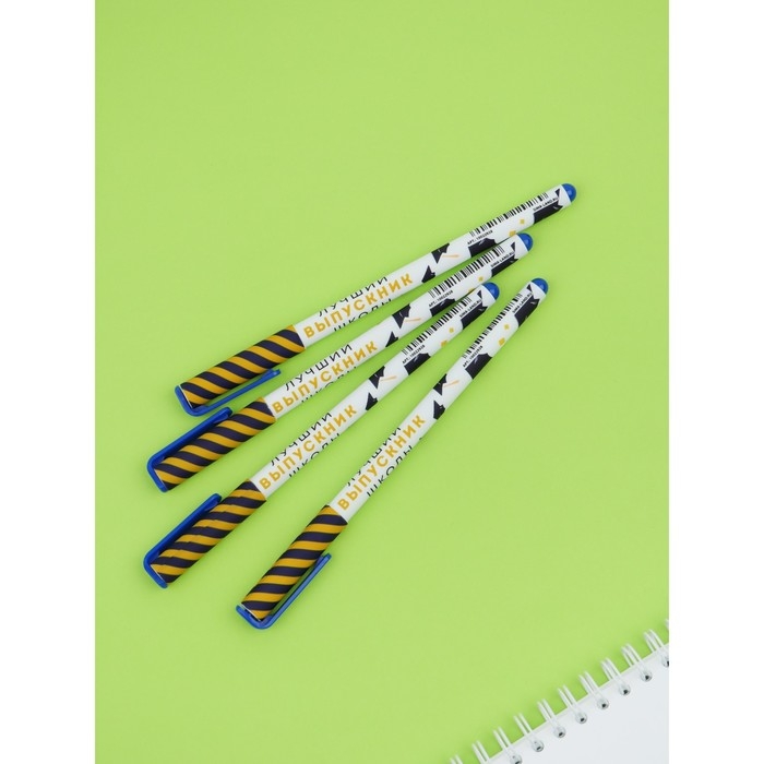 Набор пластиковых ручек "Лучший выпускник школы", синяя паста 0.7 мм, 4 шт