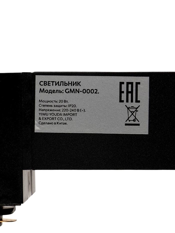 Трековый светильник линейный, поворотный, 20 Вт, 1800 Лм, 4000К, IP20, черный
