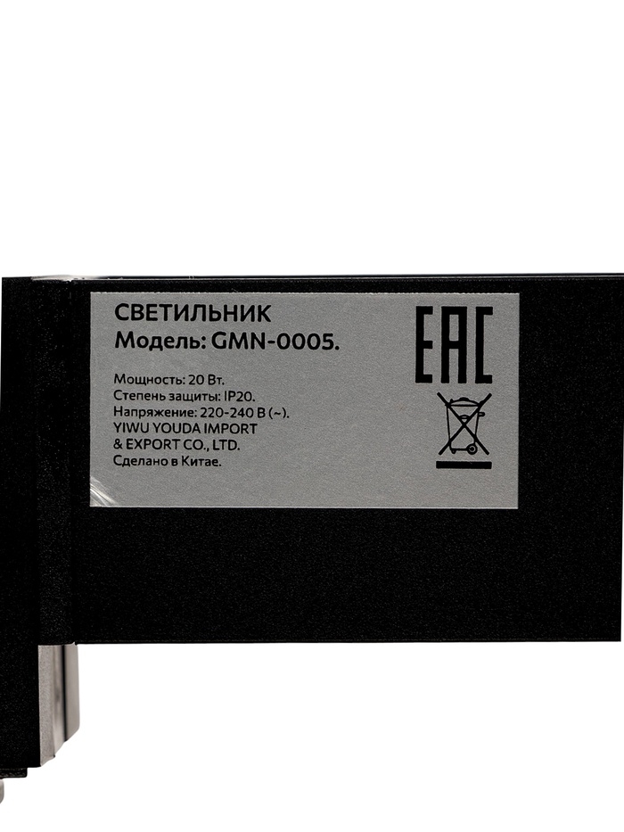 Трековый светильник линейный, поворотный, 20 Вт, 1800 Лм, 4000К, IP20, черный