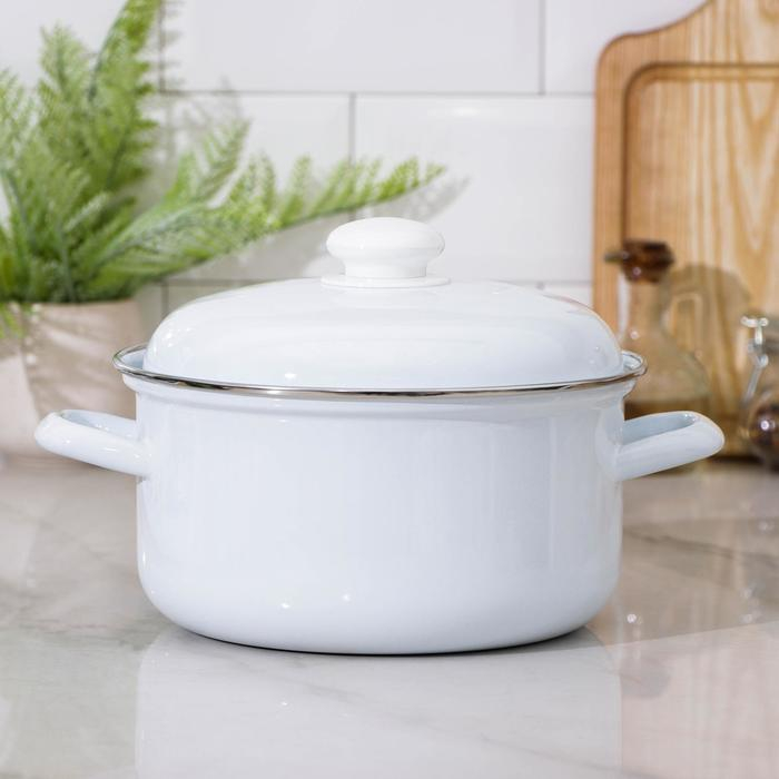 Кастрюля эмалированная без деколи, 3 л, индукция, цвет белый