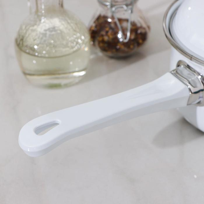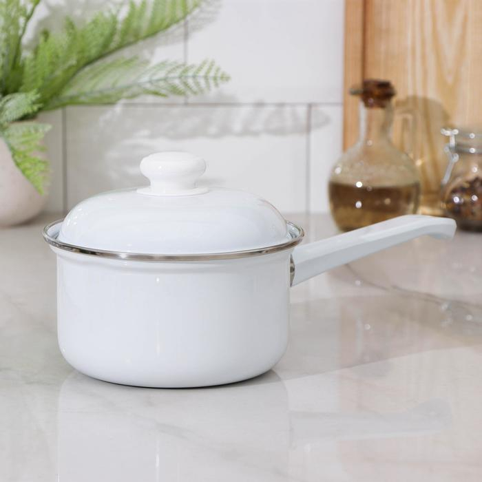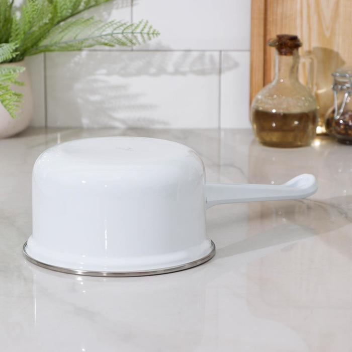 Ковш эмалированный цилиндрический, 1 л, без деколи, индукция, цвет белый