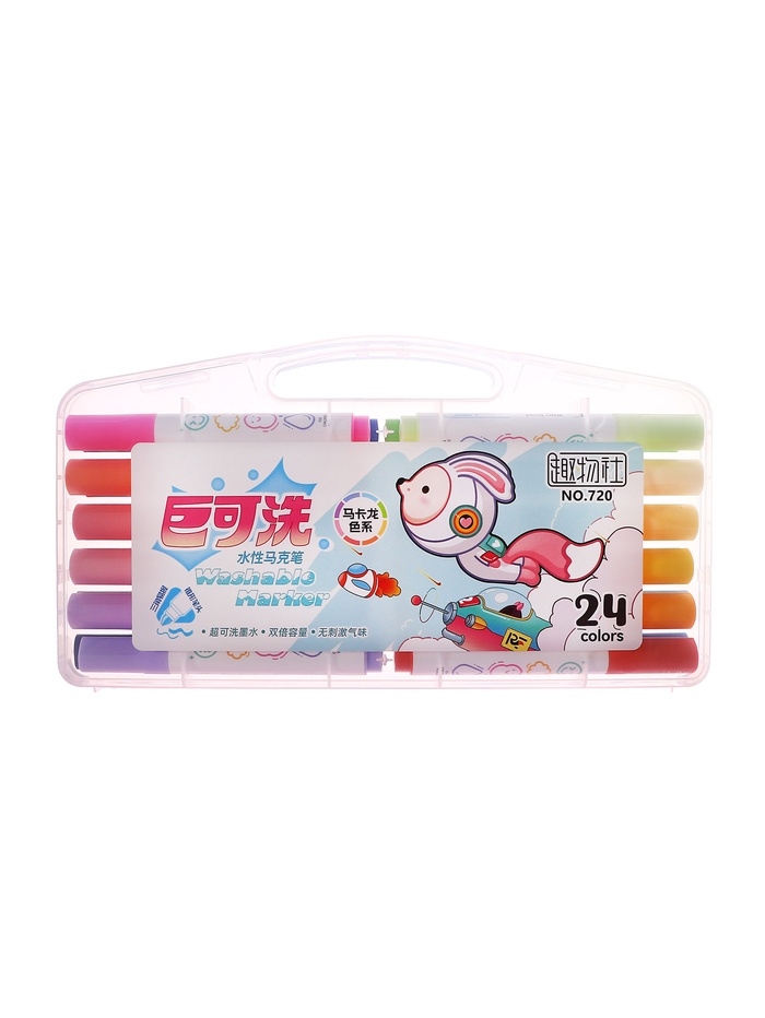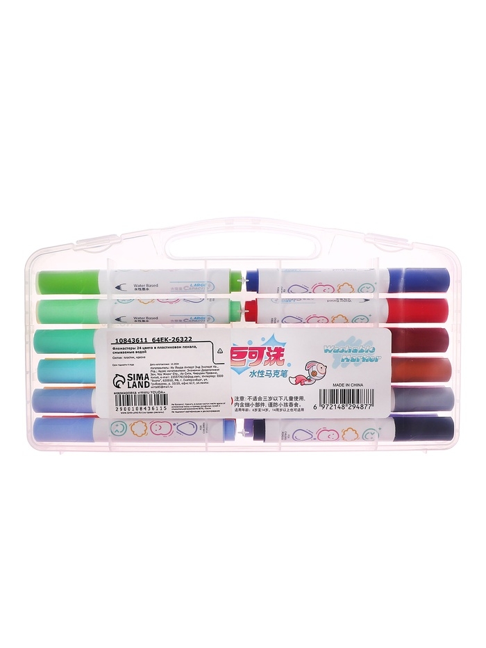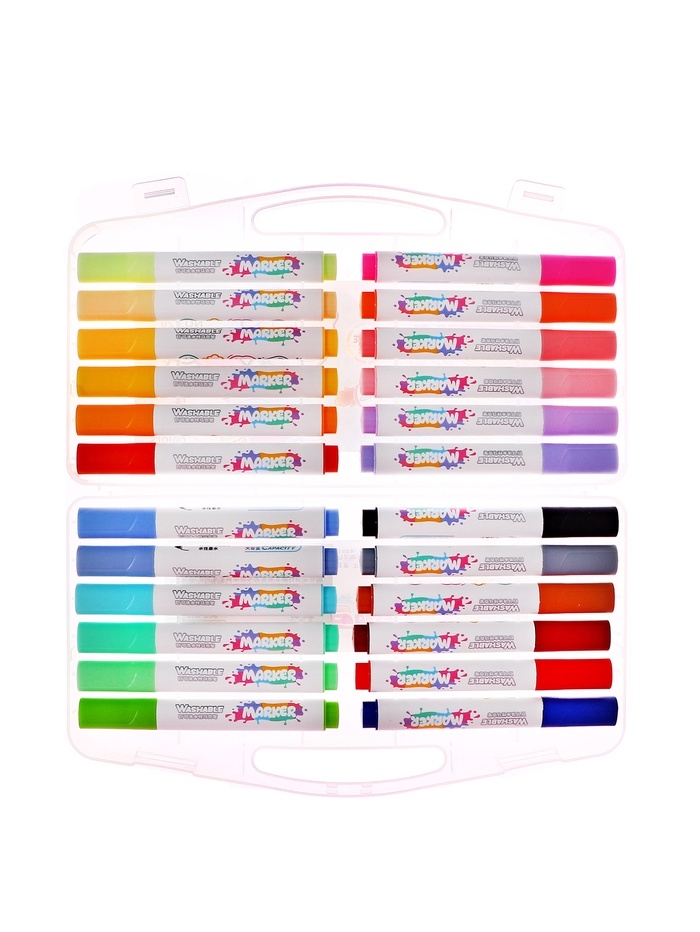 Фломастеры 24 цвета в пластиковом пенала, смываемые водой