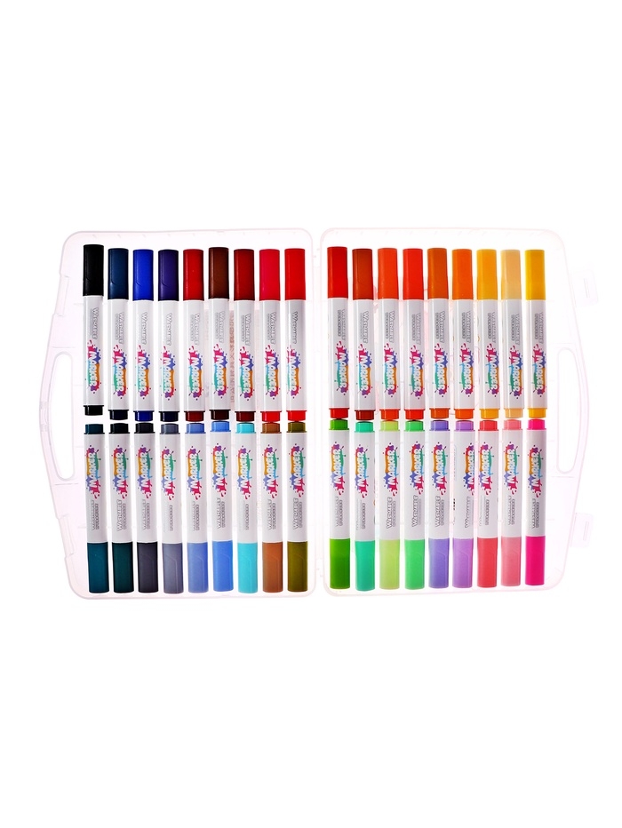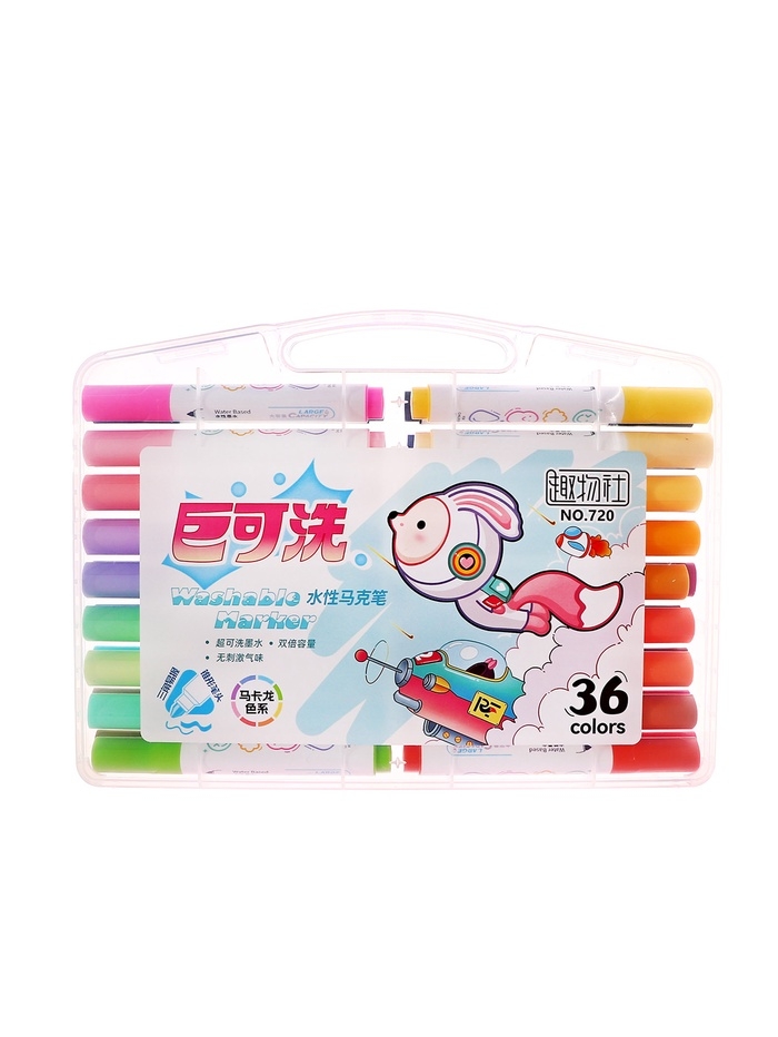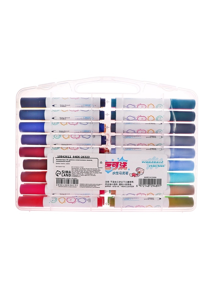 Фломастеры 36 цветов в пластиковом пенала, смываемые водой