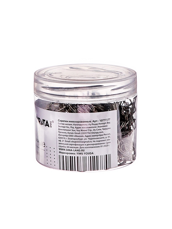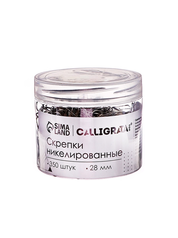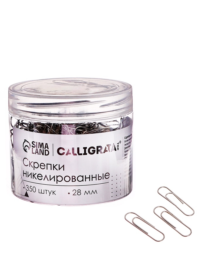 Скрепки 28мм никелированные в пластиковой тубе 350 штук