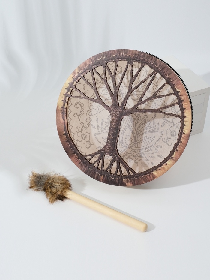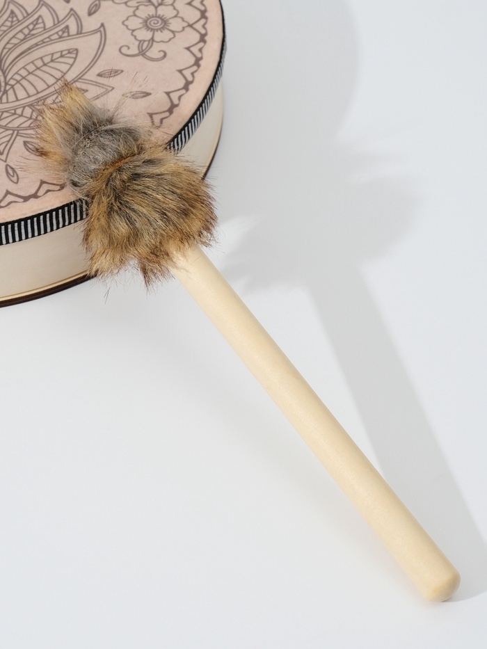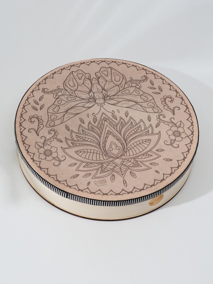 Шаманский бубен "Мехенди. Лотос и бабочка" с колотушкой 5х25х25 см