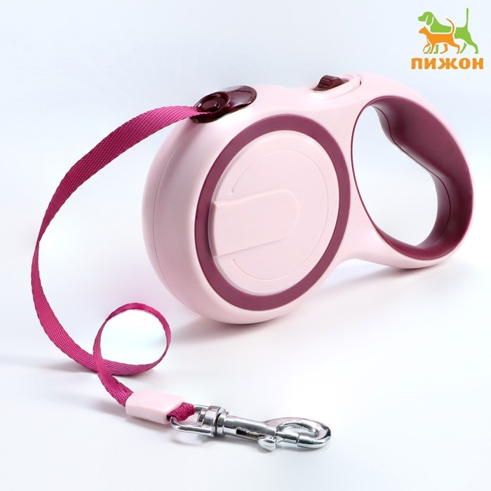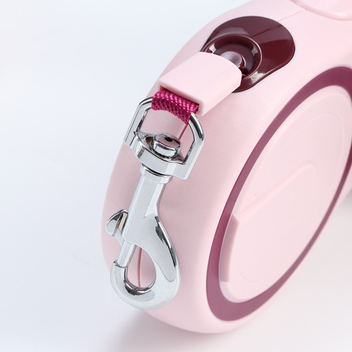 Рулетка с системой эффективного скручивания поводка, 5 м, до 20 кг, розово-бордовая