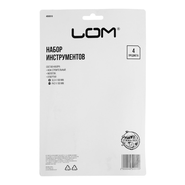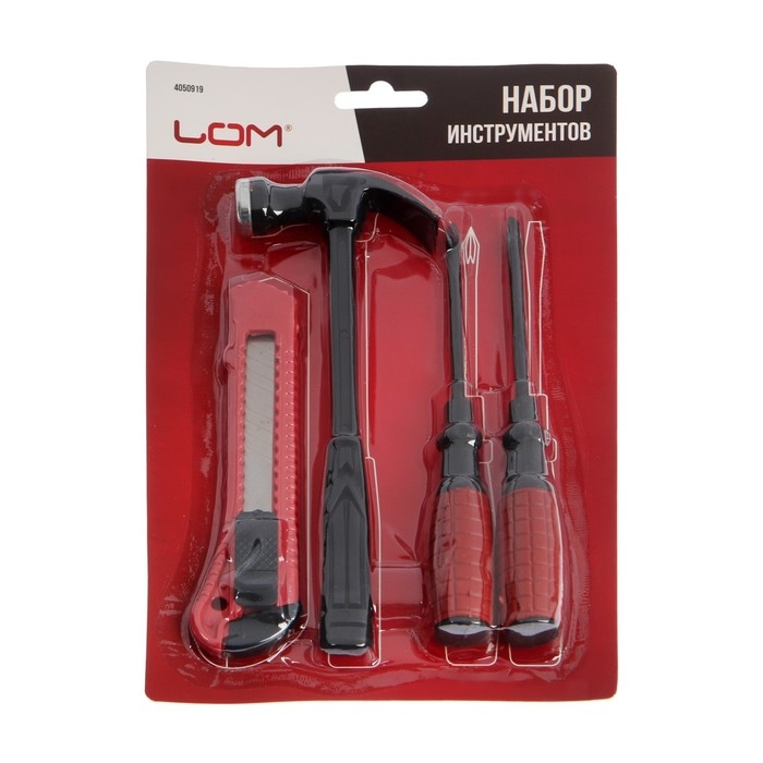 Набор инструментов ЛОМ, молоток, 2 отвертки, нож, 4 предмета