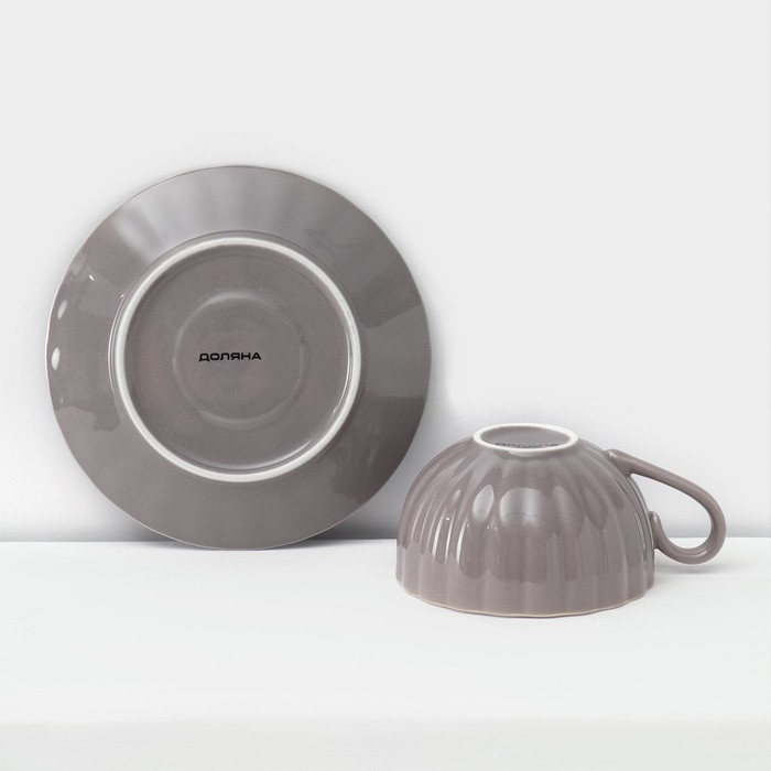 Сервиз фарфоровый чайный Доляна «Вивьен», 12 предметов: 6 чашек 200 мл, 6 блюдец d=15 см, цвет серый