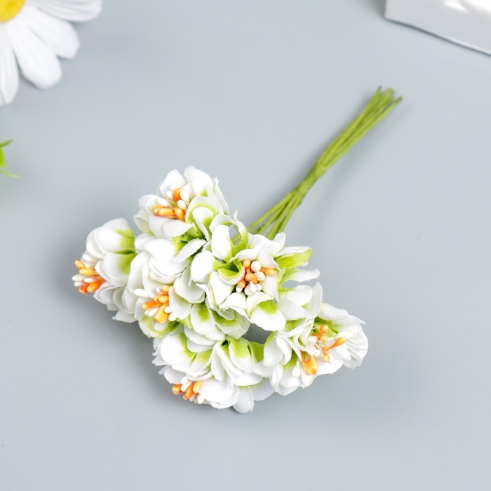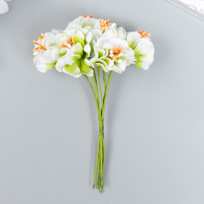 Цветы для декорирования "Пион Лоллипоп" 1 букет=6 цветов бело-зелёный 9 см