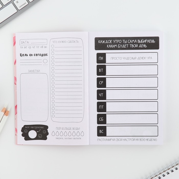 Ежедневник творческого человека с заданиями А5, 120 л. В мягкой обложке «Люби себя»