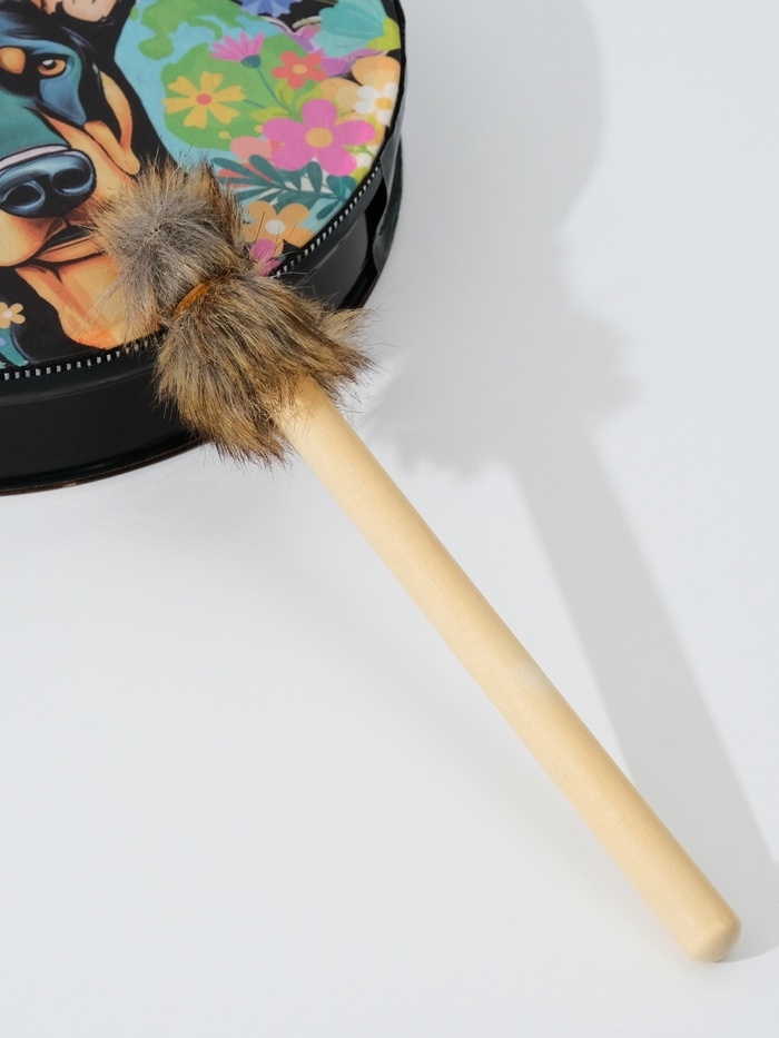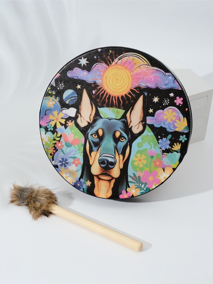 Шаманский бубен "Доберман в цветах" с колотушкой 5х25х25 см