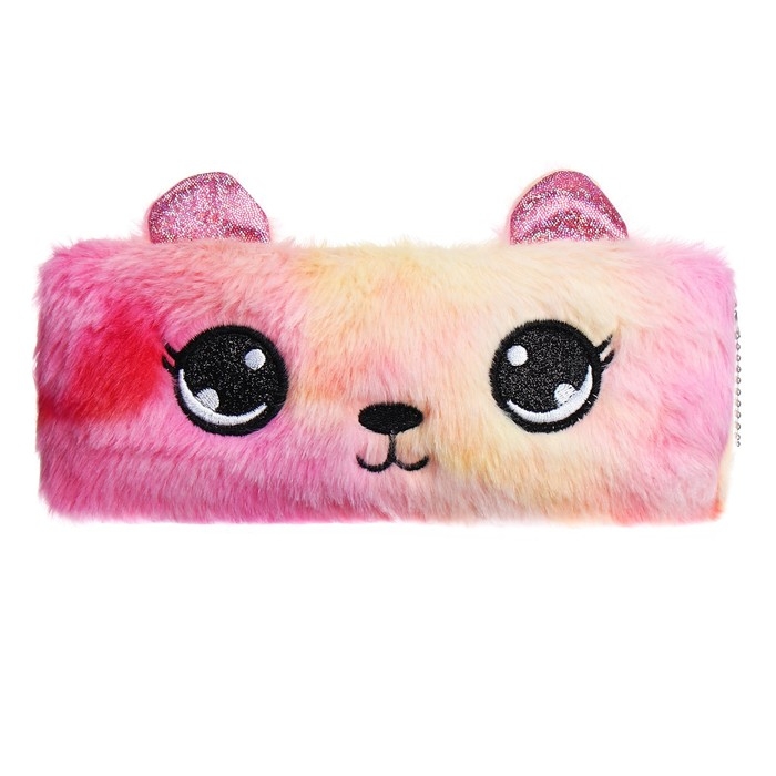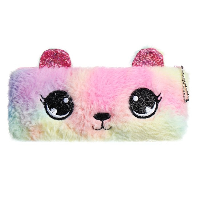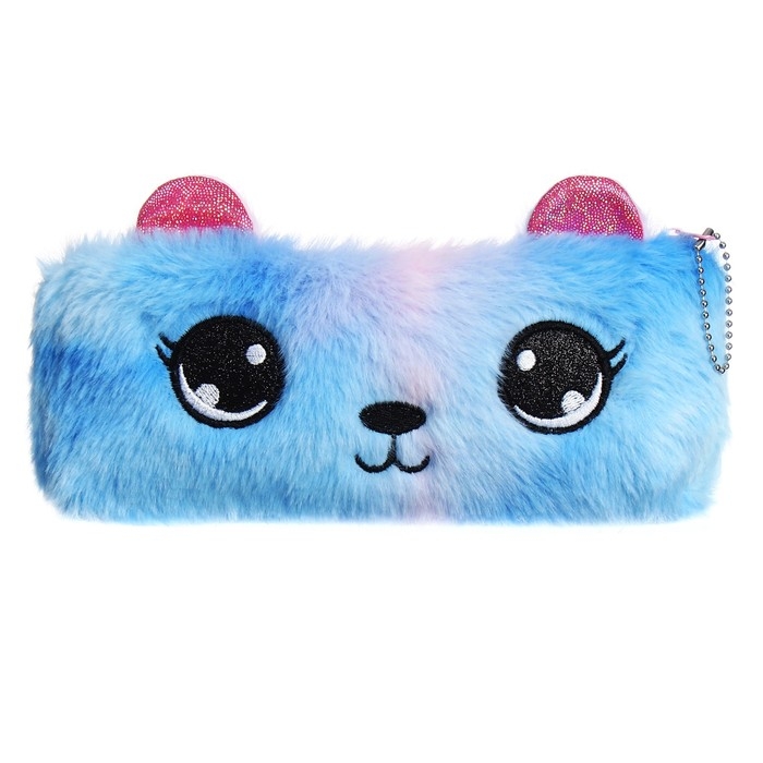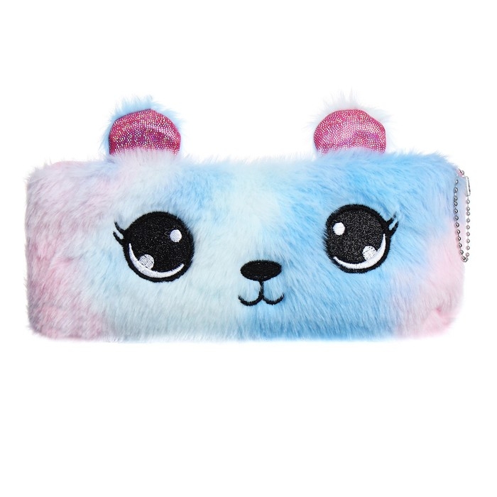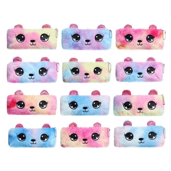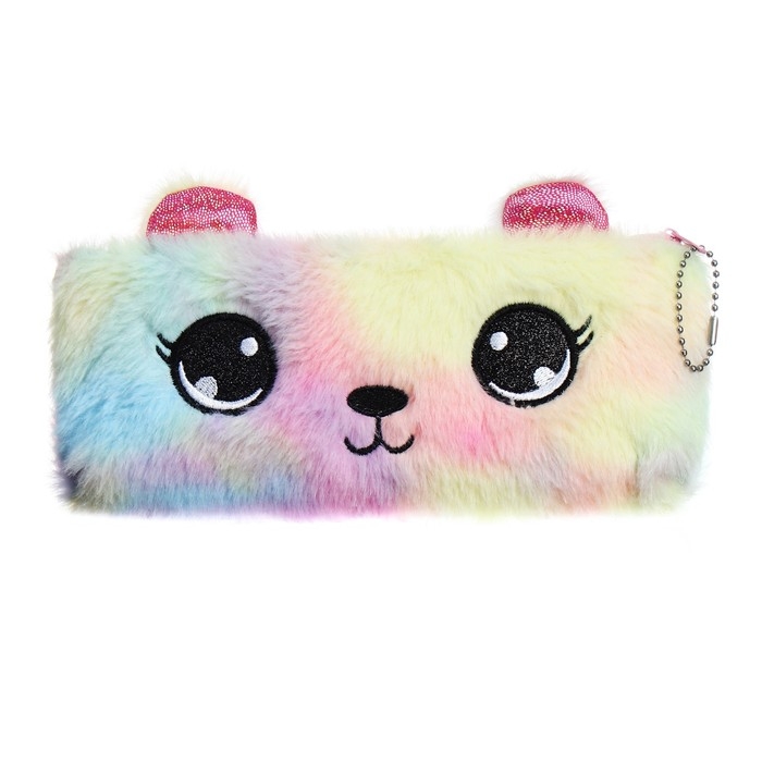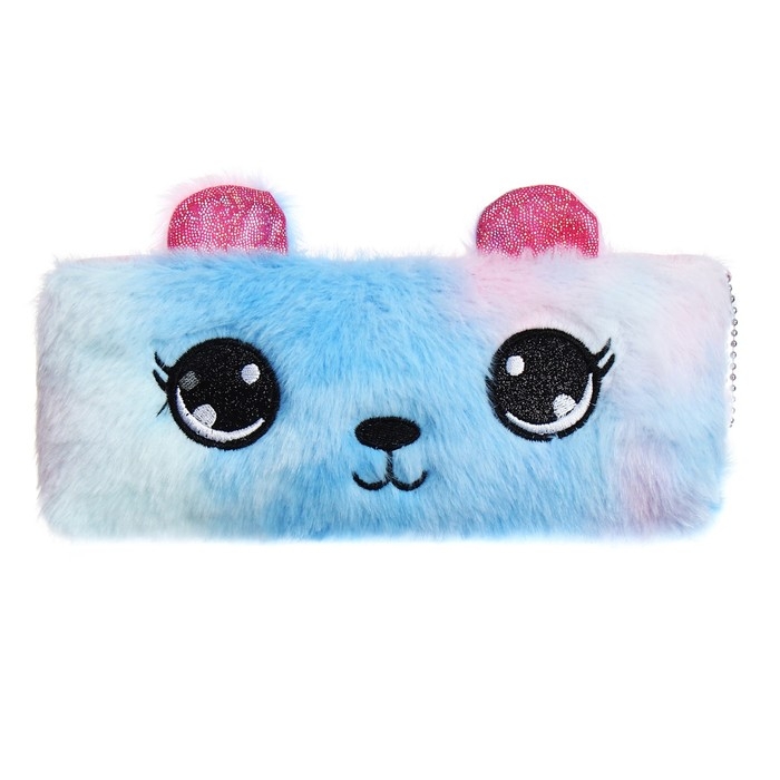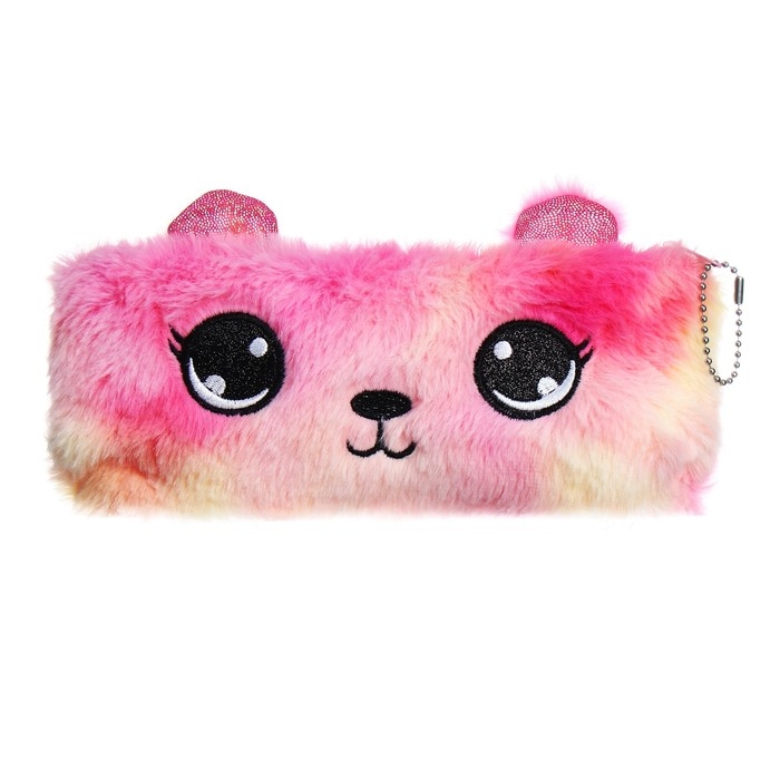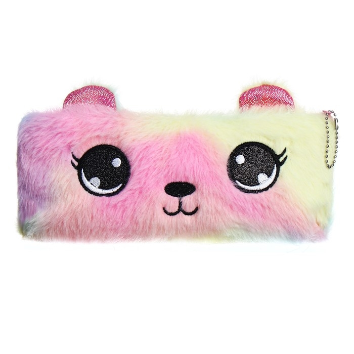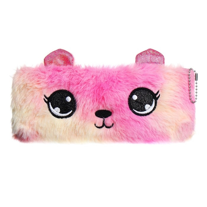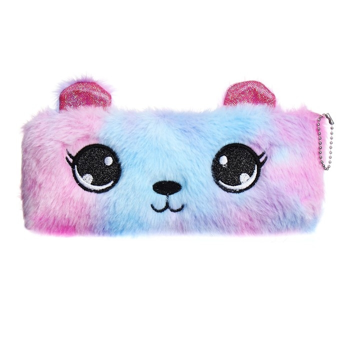 Пенал школьный меховой на молнии Calligrata "Мишка", микс