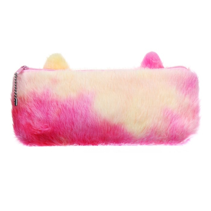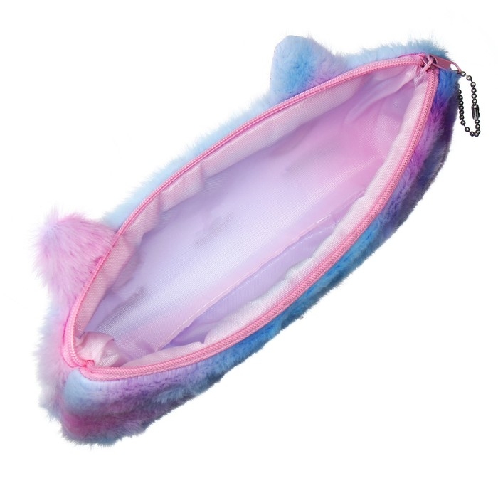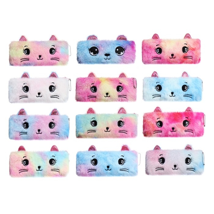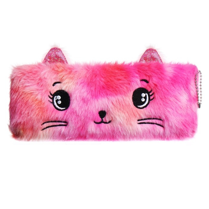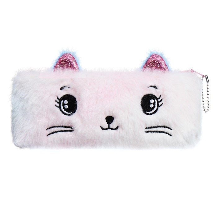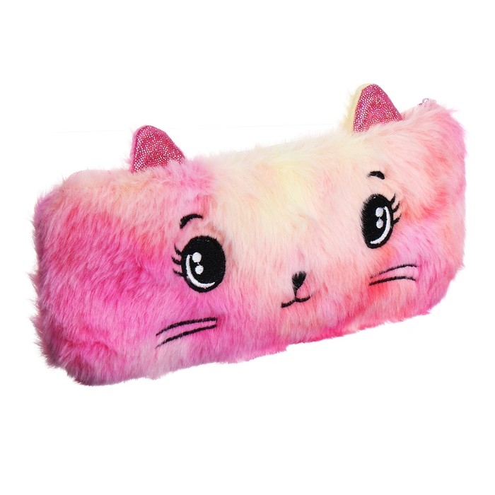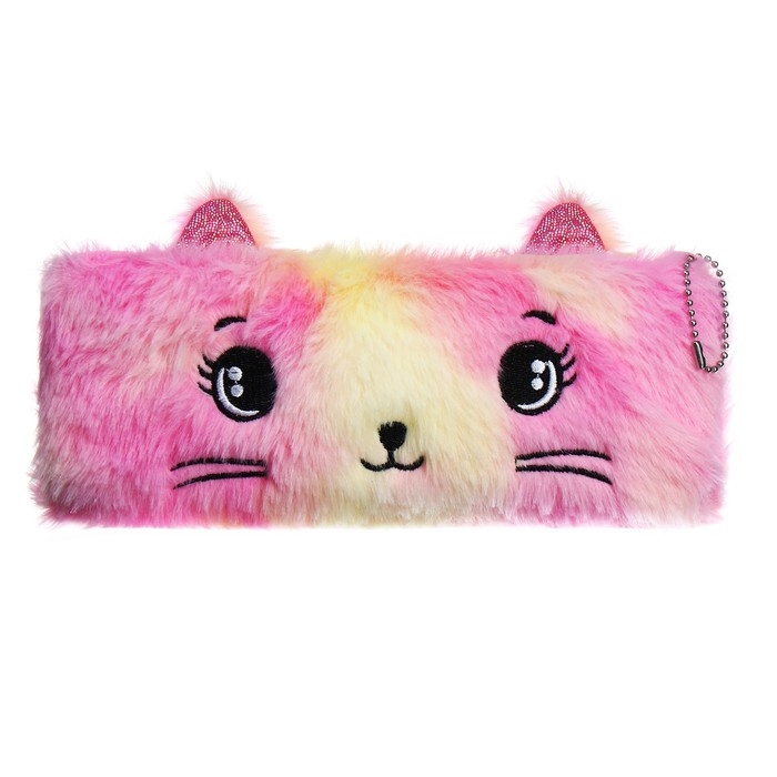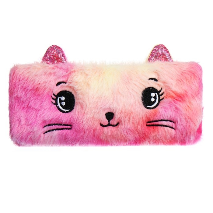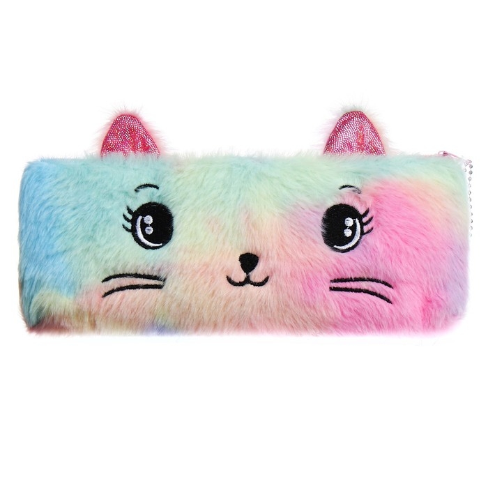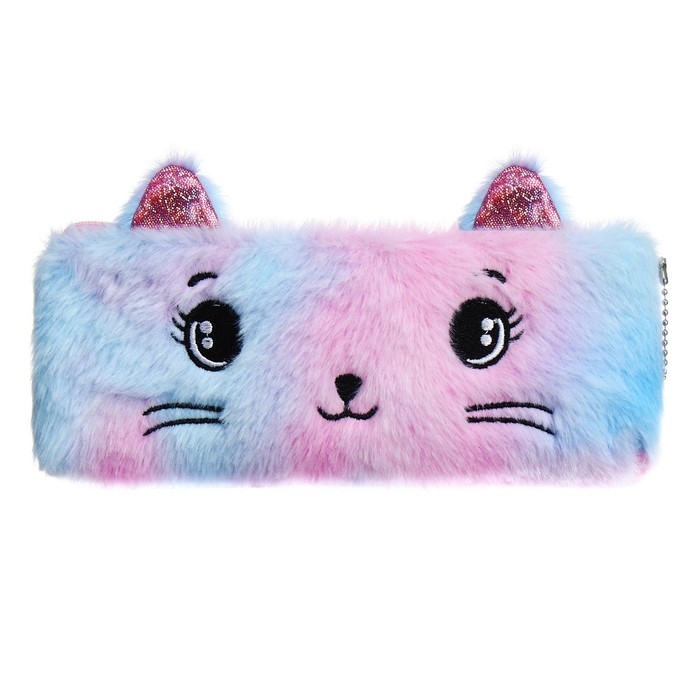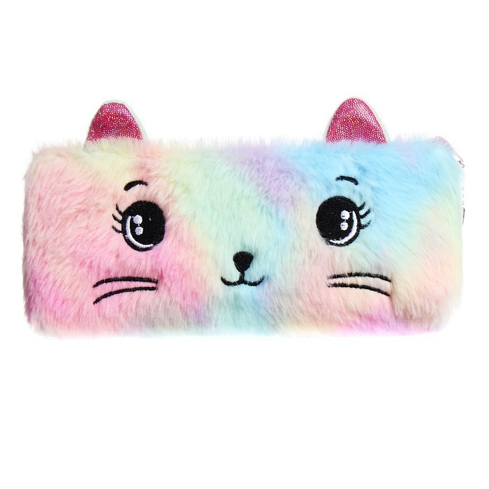 Пенал школьный меховой на молнии Calligrata "Кошечка", микс